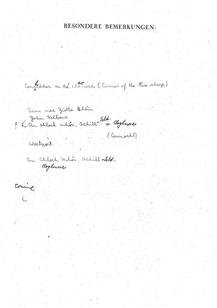 | Áit(eanna) ina raibh cónaí air/uirthi ó aois 7-20 | An Chloch Mhór, Acaill, Co. Mhaigh Eo |
