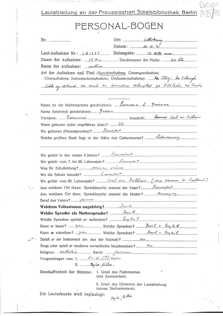 | Personalbogen form(s) for this speaker (RIA Library ref.) | Doegen P-B/98, Doegen P-B/101 |