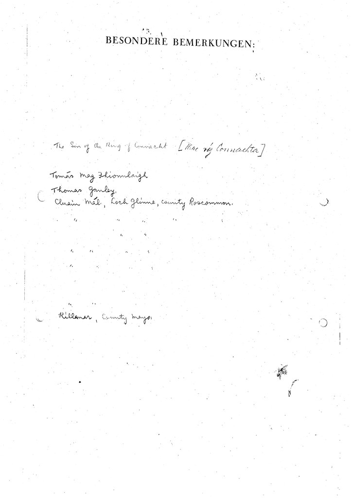 | Place(s) lived age 7-20 | Cloonmaul, Loughglinn, Co. Roscommon |