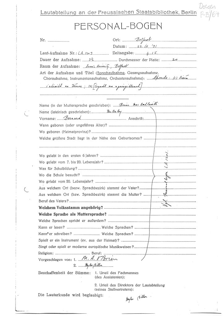 | Personalbogen form(s) for this speaker (RIA Library ref.) | Doegen P-B/62, Doegen P-B/64, Doegen P-B/65 |