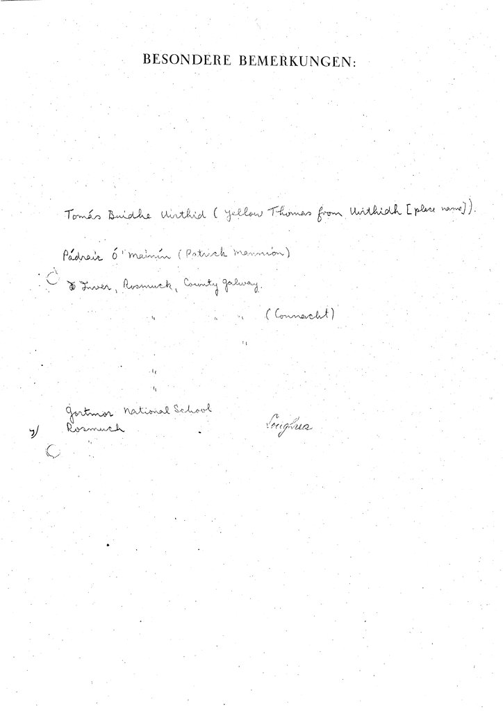 | Names (of RIA committee members, recordist) appearing on form | Tomás Ó Máille |