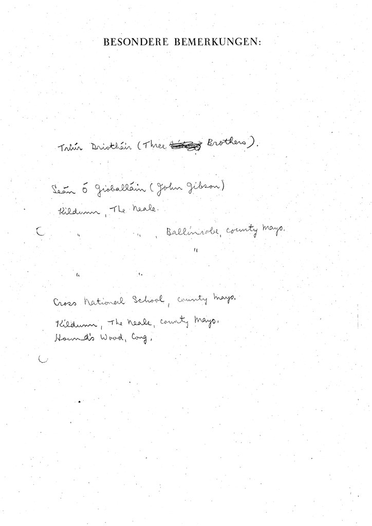 | Names (of RIA committee members, recordist) appearing on form | Tomás Ó Máille |