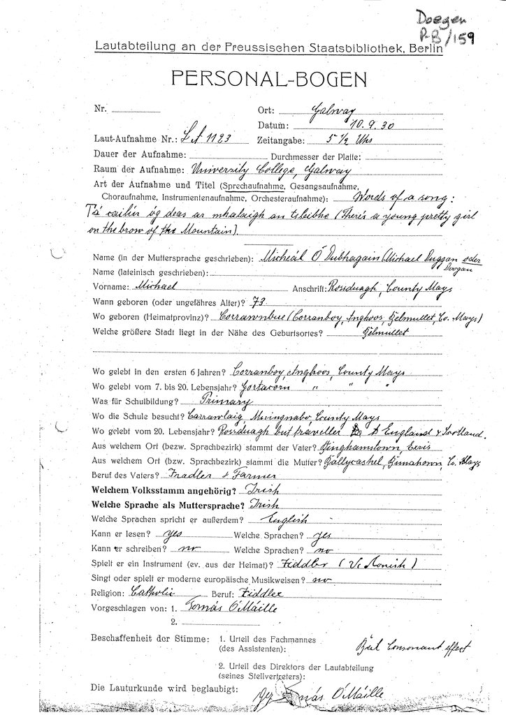 | Personalbogen form(s) for this speaker (RIA Library ref.) | Doegen P-B/159 |