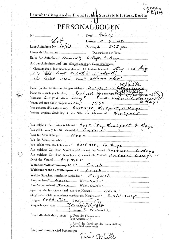 | Personalbogen form(s) for this speaker (RIA Library ref.) | Doegen P-B/166 |