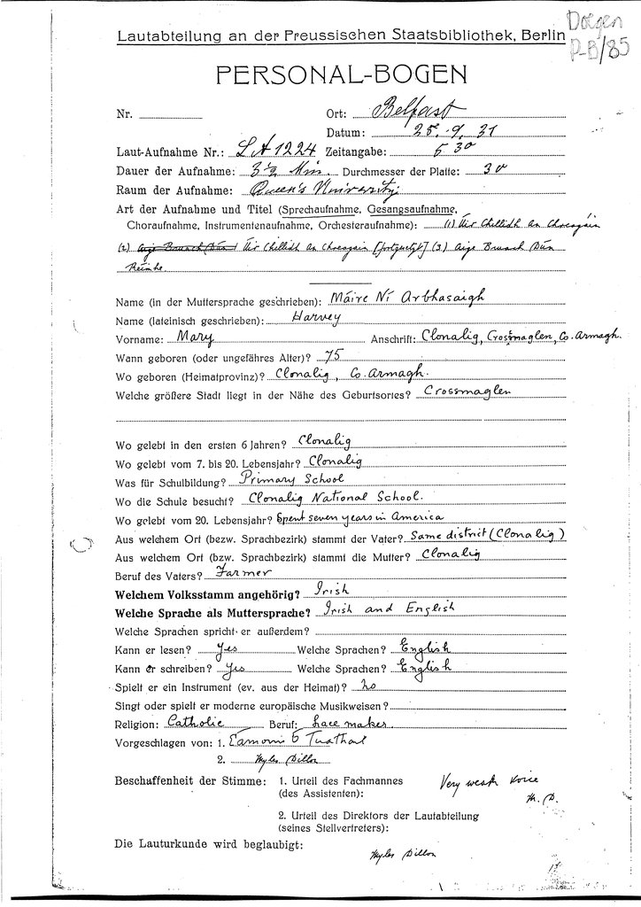 | Personalbogen form(s) for this speaker (RIA Library ref.) | Doegen P-B/85, Doegen P-B/86 |