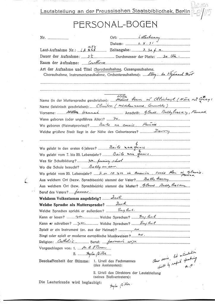 | Personalbogen form(s) for this speaker (RIA Library ref.) | Doegen P-B/115, Doegen P-B/116 |