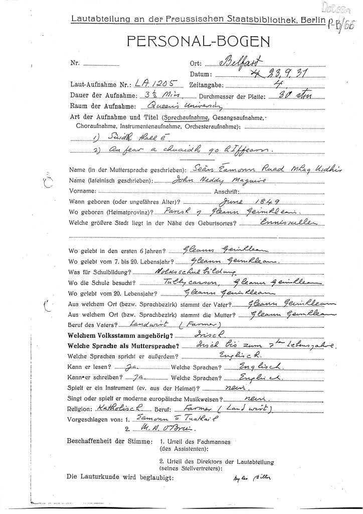 | Personalbogen form(s) for this speaker (RIA Library ref.) | Doegen P-B/66, Doegen P-B/67, Doegen P-B/68 |