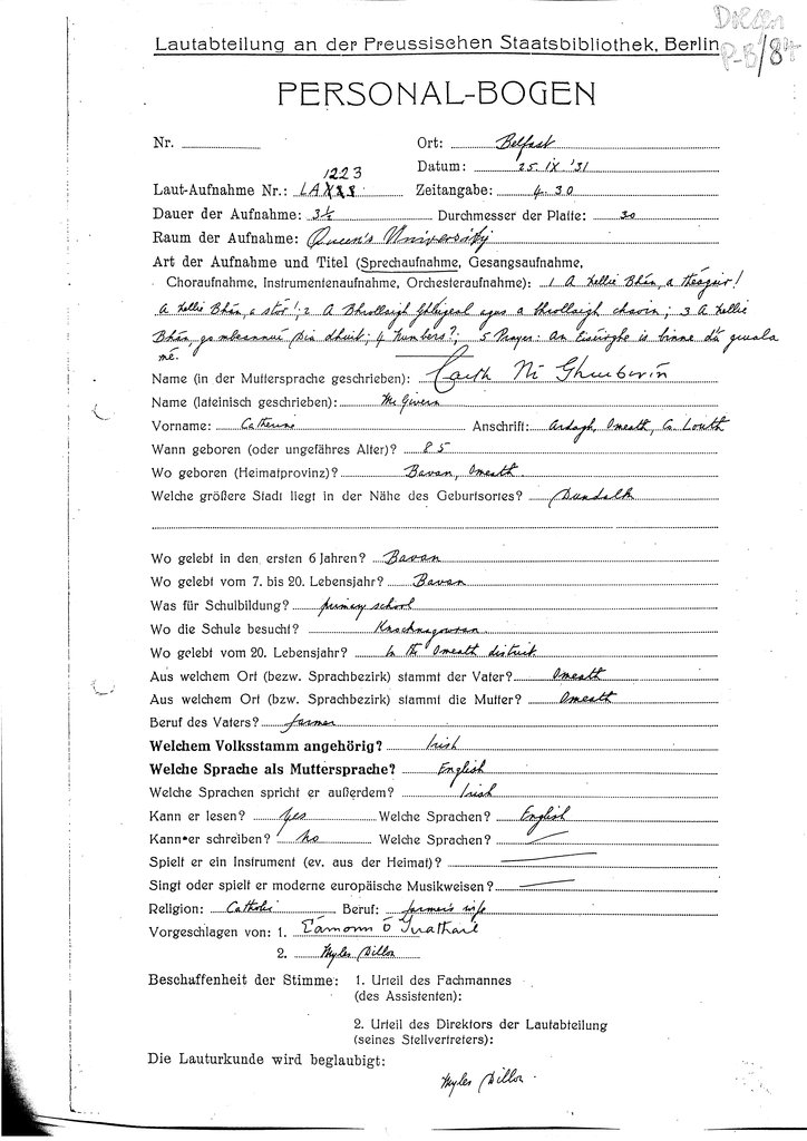 | Personalbogen form(s) for this speaker (RIA Library ref.) | Doegen P-B/84 |