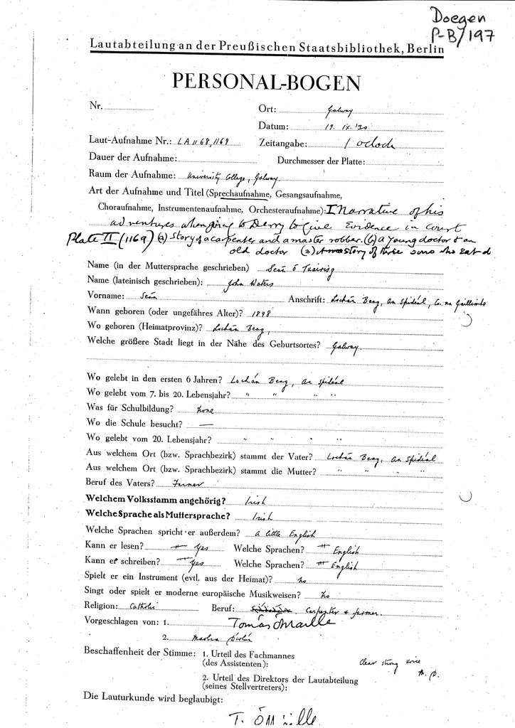 | Personalbogen form(s) for this speaker (RIA Library ref.) | Doegen P-B/197 |