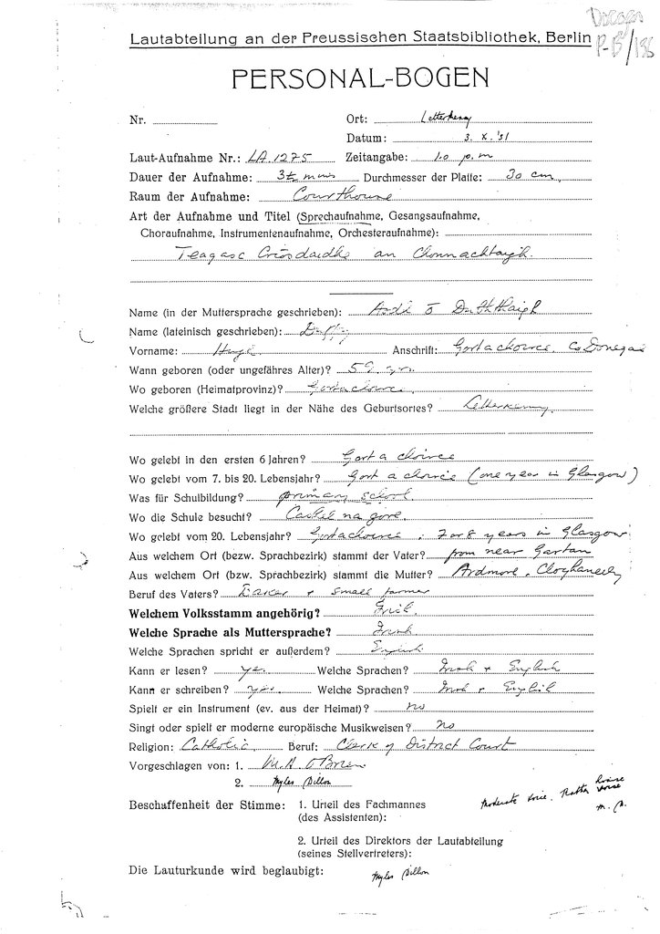 | Personalbogen form(s) for this speaker (RIA Library ref.) | Doegen P-B/136, Doegen P-B/137 |