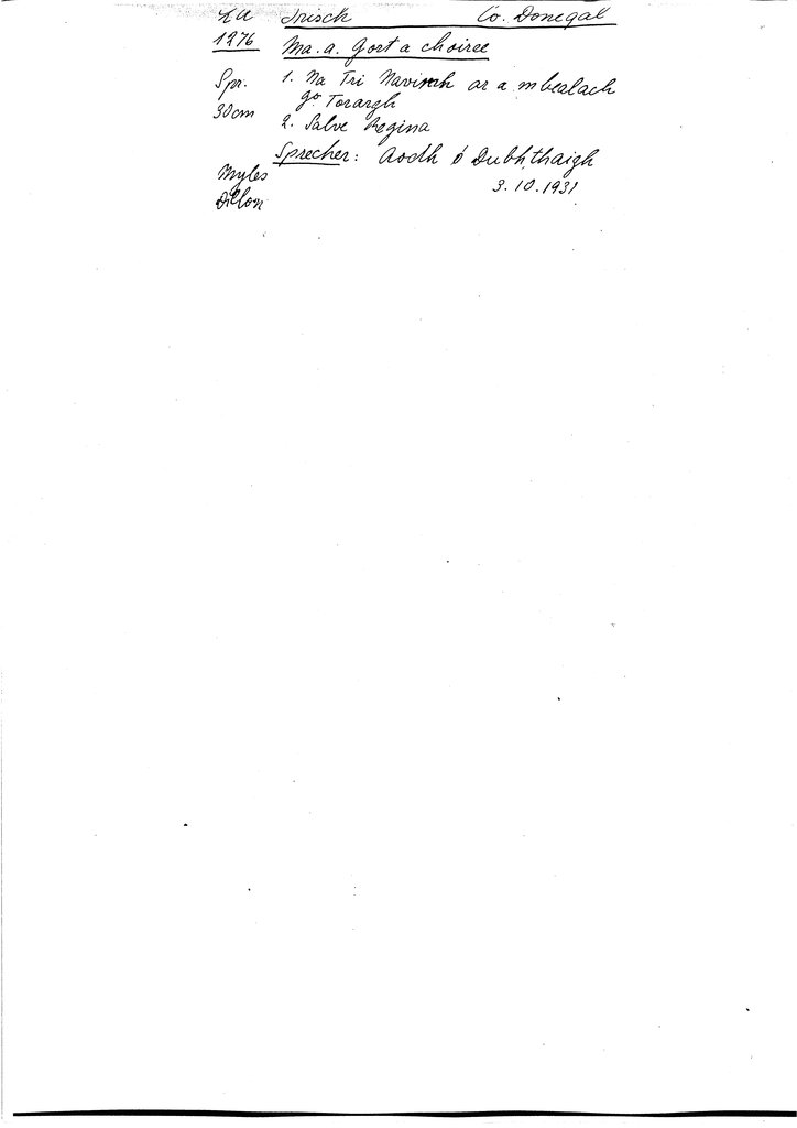 | Names (of RIA committee members, recordist) appearing on form | Myles Dillon, M.A. O'Brien |