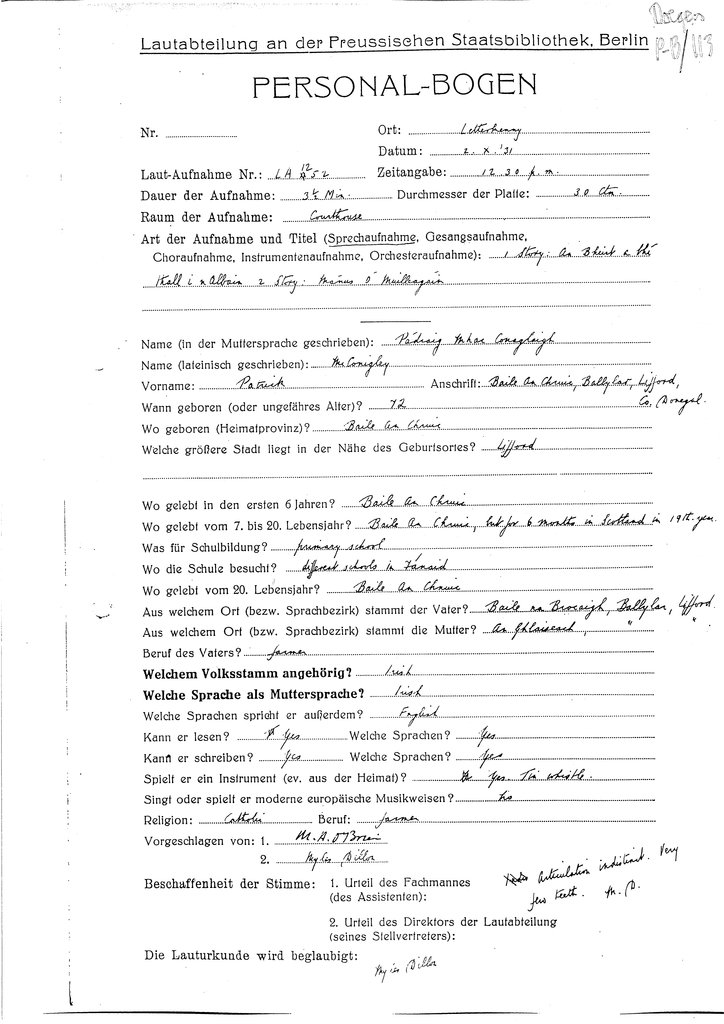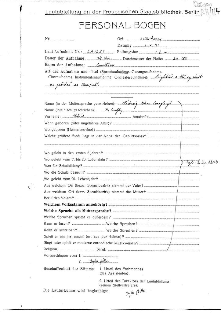 | Personalbogen form(s) for this speaker (RIA Library ref.) | Doegen P-B/113, Doegen P-B/114 |