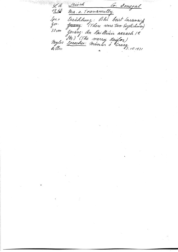 | Names (of RIA committee members, recordist) appearing on form | Myles Dillon, M.A. O'Brien |