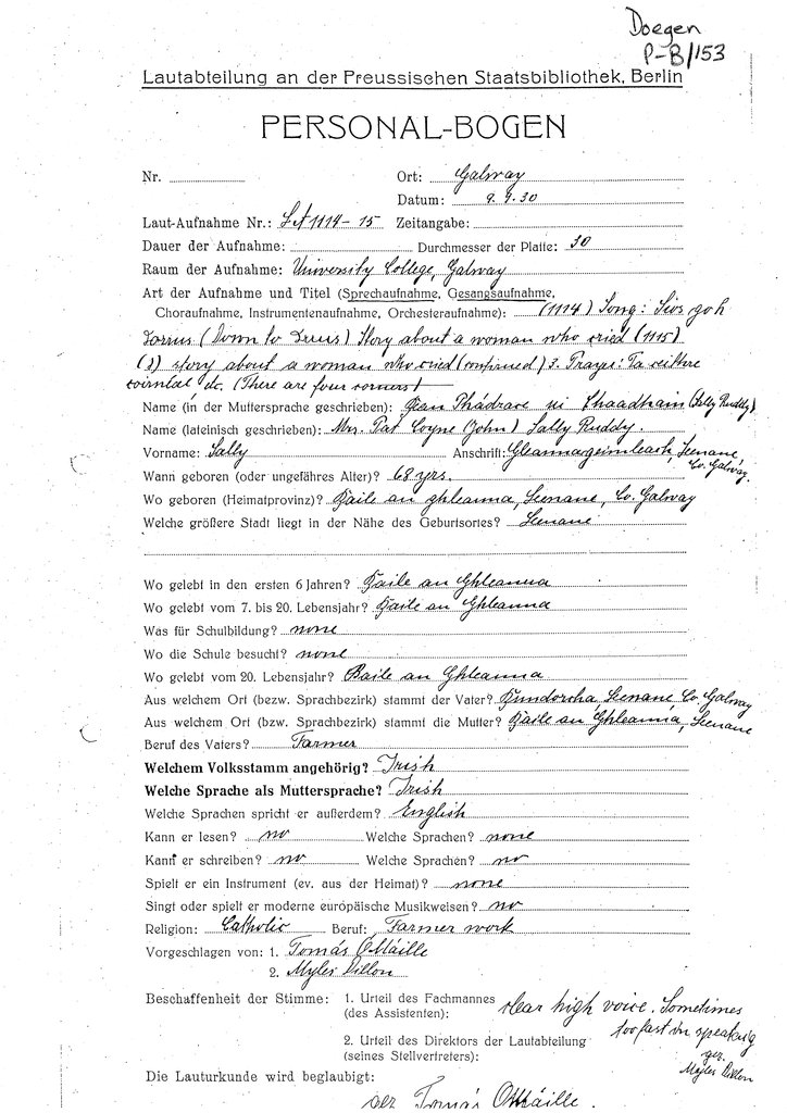 | Personalbogen form(s) for this speaker (RIA Library ref.) | Doegen P-B/153 |