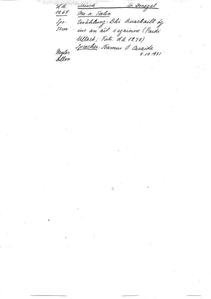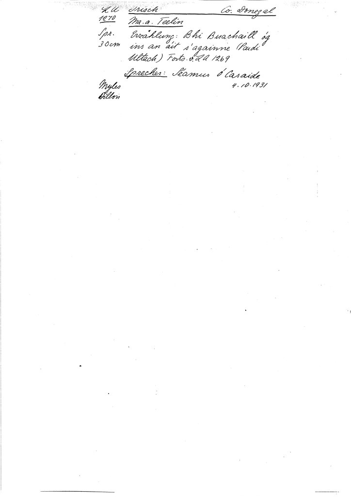 | Names (of RIA committee members, recordist) appearing on form | Myles Dillon, M.A. O'Brien |